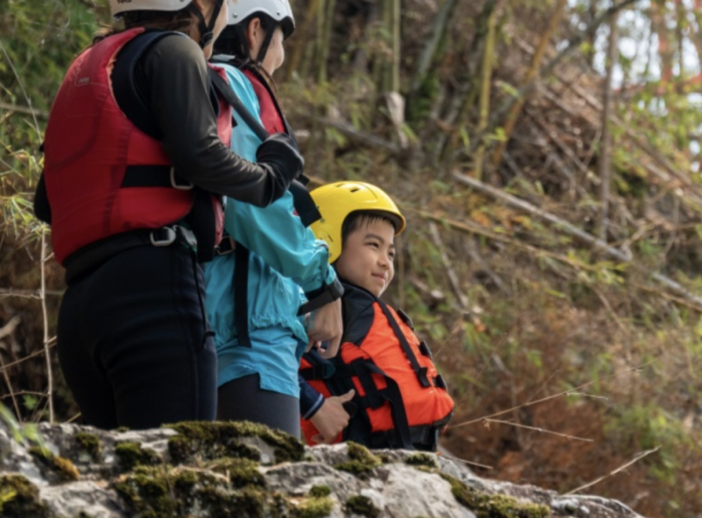 ブッシュクラフトから始まり、ラフティング、沢登り、雪洞づくりへ。段階的に負荷を上げながら、自立と自律の土台を築きます。
